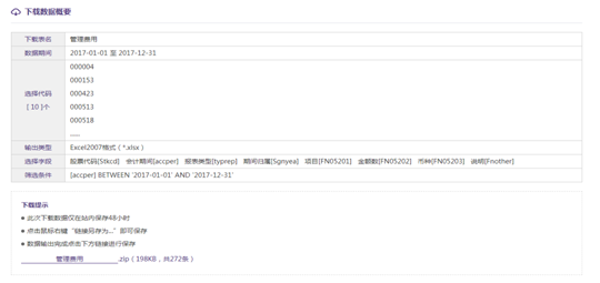 下面我们就以 “管理费用”为例,利用国泰安数据库查找十家上市公司十年的管理费用详细情况。