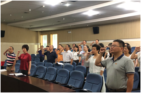 黄金初馆长首先带领全馆党员重温入党誓词。广大党员同志在誓言中回望“初心”和“来路”,汲取“信心”和“力量”,接受了深刻的党性教育和党性锻炼。