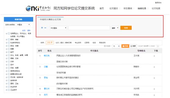 进入米兰电竞·(中国区)硕博论文数据库论文检索界面,就可以按中文题名、姓名、导师姓名、学号、院系名称、中文关键词等字段进行检索啦,还可以下载全文!