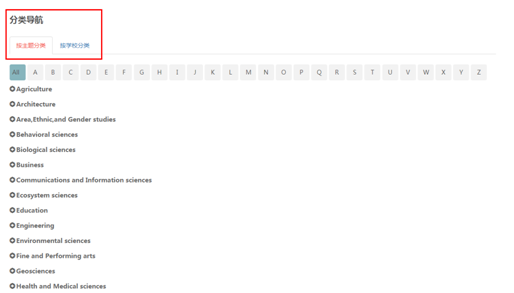 还可以点击分类导航,按照“主题”或者“学校”进行浏览。