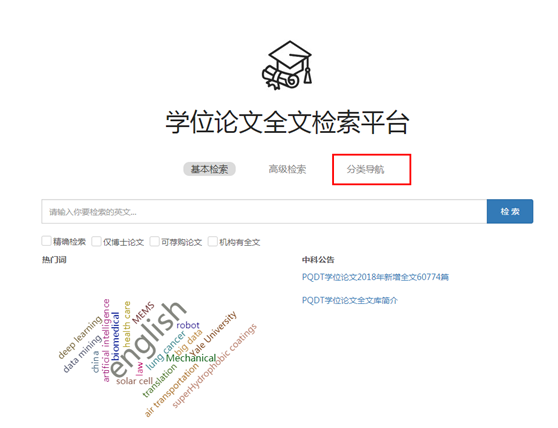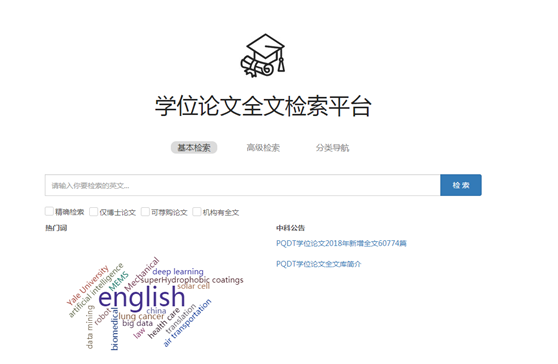 检索入口:图书馆主页——外文数据库——ProQuest学位论文全文检索平台