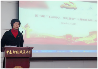 (通讯员 刘佳宇)1月10日下午,图书馆在逸夫馆一楼报告厅召开了“不忘初心、牢记使命”主题教育总结大会,全体党员参加了会议,会议由图书馆党委书记白学娟主持。