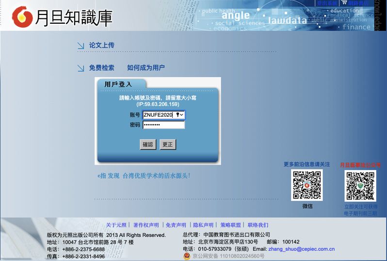 无需通过VPN或易瑞,只要输入网址:www.lawdata01.com.cn,用户名:ZNUFE2020,密码:ZNUFE1234,就可以使用月旦知识库的资源。(该账户截止到3月31日)