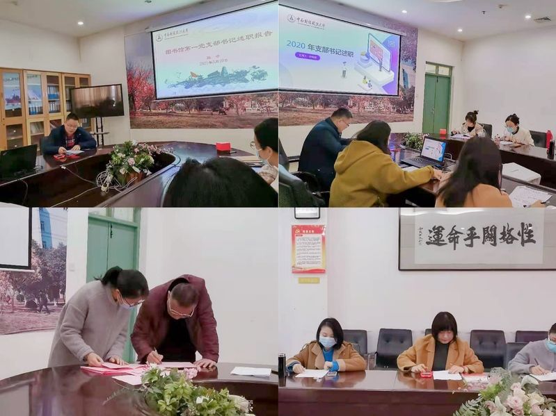 图书馆四位支部书记结合PPT图文展示,依次作现场述职。他们围绕2020年党支部加强政治理论学习、履行党建工作责任、落实党建工作重点任务、强化党员教育管理、深化支部规范化建设、党建与业务工作相融合等方面的内容,认真总结了上一年党建工作取得的成效。同时,各位支部书记认真查找了党建工作中存在的弱项和短板并着重分析了原因,对2021年加强支部党建工作提出了具体举措。