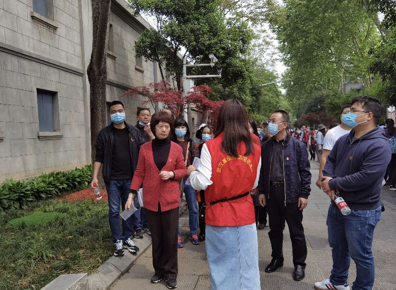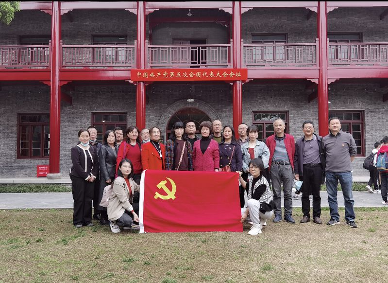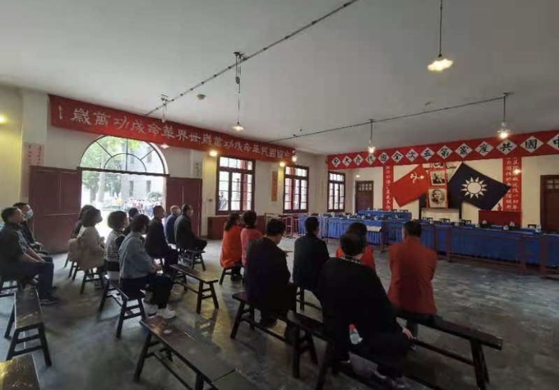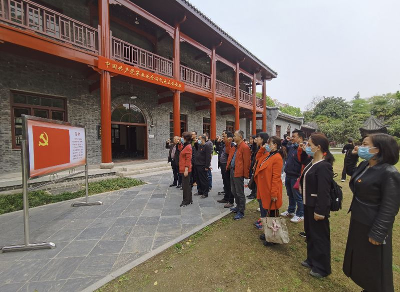 参观第二站是中共五大会址纪念馆暨陈潭秋烈士纪念馆。1927年召开的中共五大是在蒋介石发动“四一二”反革命政变、大肆屠杀共产党人和革命群众、革命面临重大危机的非常状态下召开的。这次会议提出了争取无产阶级对革命的领导权、建立革命民主政权和实行土地革命等正确原则,在党的历史上第一次设立了中央监察委员会,确立了民主集中制为党的指导原则,在党的建设史上作出了重要贡献。五大会址同时也是中国共产党创始人之一、湖北地区共产党组织负责人陈潭秋烈士曾经的居住地,他以教书作掩护从事革命活动,这里一度成为湖北革命运动的指挥机关。三支部党员们坐在中共五大会址礼堂中,聆听历史回声、感受革命氛围,并在会址外庄严举起右手,在白学娟书记的带领下,面对鲜红的党旗,重温入党誓词,铭记党员初心使命。