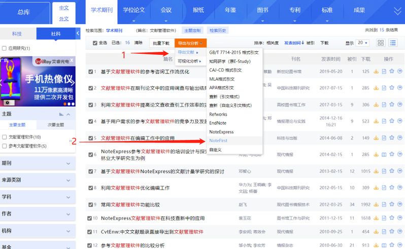 2.选择要导出的文献,并选择Notefirst格式(见图6);