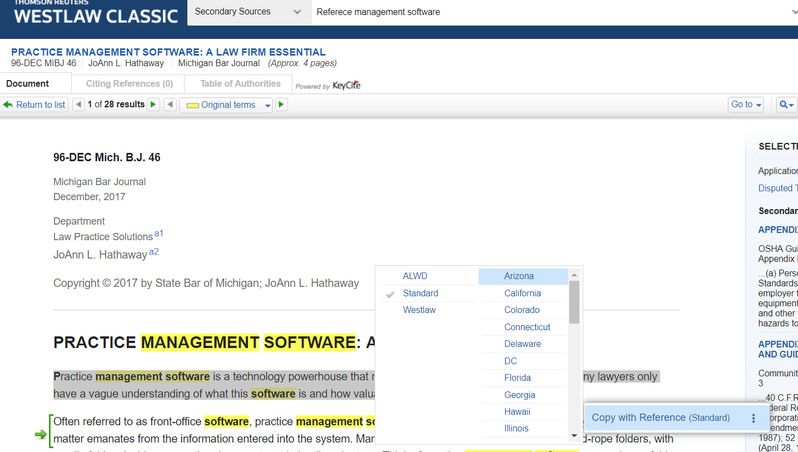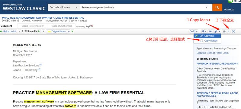 图22 Westlaw拷贝引用