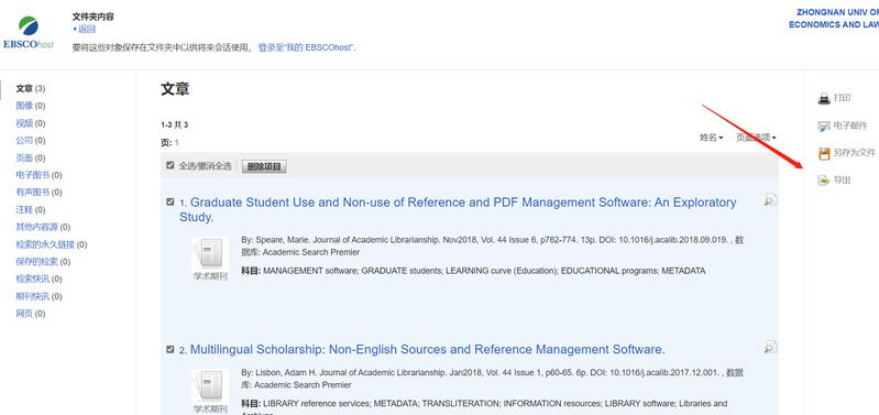 图14 EBSCOhost文件夹导出