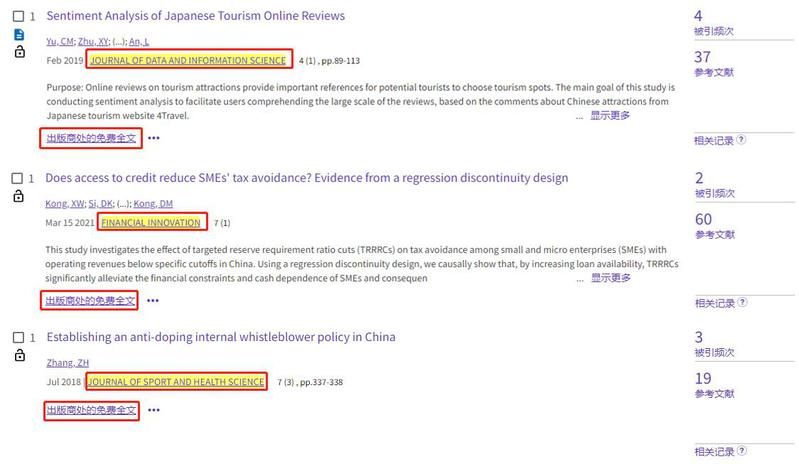 在检索结果列表,点击“出版商处的免费全文”,即可跳转至相应的界面,可以根据自身的需要阅读原文或下载电子版全文。