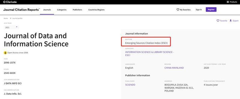 《Journal of Data and Information Science》(《数据与情报科学学报(英)》,简称JDIS)