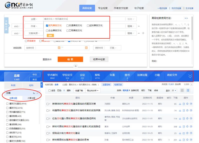 二、“廉政文化”专题文献检索技巧