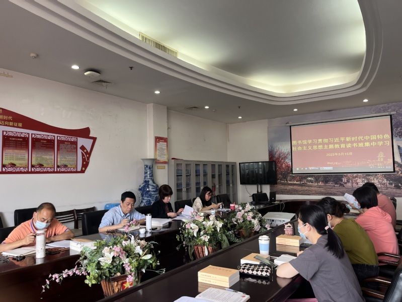 (通讯员 刘佳宇)5月15日,图书馆举办学习贯彻习近平新时代中国特色社会主义思想主题教育读书班第一次集中学习,聚焦“推动经济高质量发展、习近平总书记关于湖北工作的重要讲话重要指示批示精神”专题,深入学习领会习近平新时代中国特色社会主义思想。图书馆班子成员、党委委员和各支部书记参加,会议由图书馆党委书记白学娟主持。