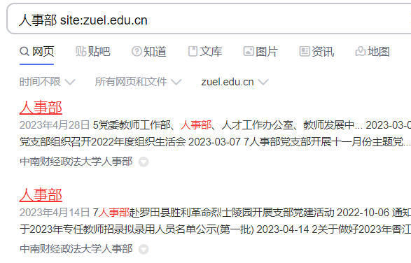 (3)检索特定组织机构站点。检索式为检索词site:站点域名。