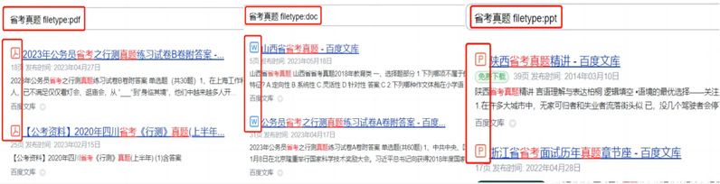 (1)检索特定格式文件。检索式为检索词filetype:文件格式。