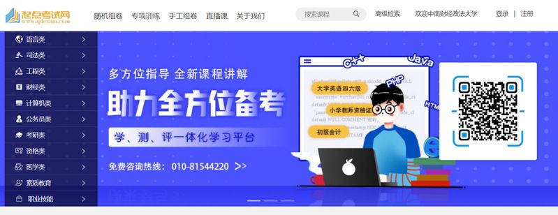 起点考试网收录了语言类、司法类、工程类、财经类、计算机类、考研类、资格类、医学类、素质教育类、职业技能类、公务员类等各类资格水平考试的视频课程和全真模拟试卷,同学们通过平台可以进行在线课程学习、模拟考试训练、针对性训练和查看知识点解析等。