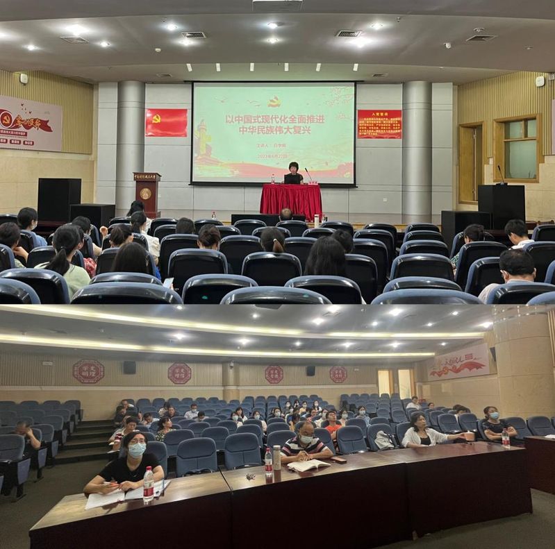 (通讯员 刘佳宇)6月27日上午,图书馆党委书记、纪委书记,馆长白学娟在逸夫楼一楼报告厅讲授“以中国式现代化全面推进中华民族伟大复兴”专题党课,图书馆领导班子成员、全馆党员和两名积极分子到场聆听。