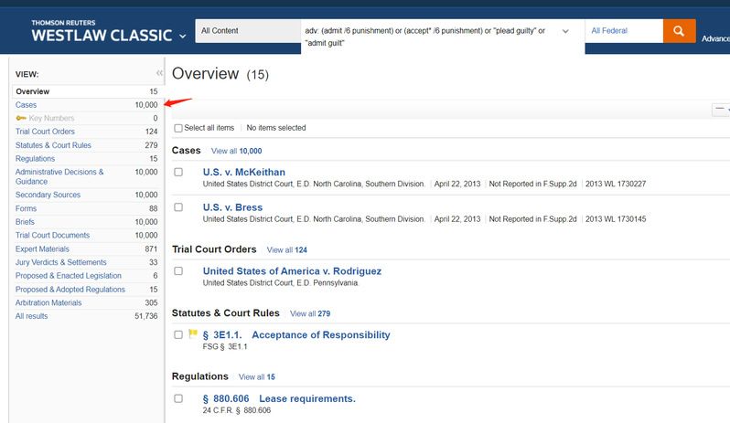 图8 认罪认罚间隔词检索法检索图(Westlaw)