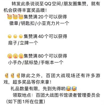 活动现场,图管会的海报在展棚上随风飘扬,展棚下的桌子上陈列着精美的集赞礼品,老部员们根据同学们的集赞数量派发奖品,热情地向同学们讲解着社团的设立目的,介绍社团的日常活动内容。心动的同学扫码填写了想要加入的部门,等待着成员图管会的一员。