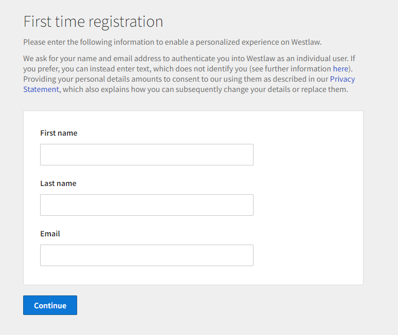 温馨提示:首次使用Westlaw Classic法律数据库,需要进行个人用户注册。注册过程中,Client ID为自定义填写内容。注册完毕后,系统会自动保存相关信息,再次使用无需重复注册。