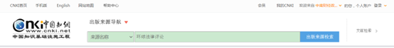 进入中国知网数据库主页后,点击检索框右侧的“出版物检索”,在出版物来源导航页检索框输入查询的期刊名称并检索(以《环球法律评论》为例)。