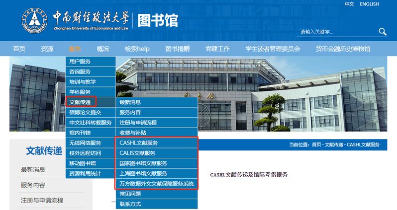 除了超星发现的“文献传递”服务以外,图书馆还提供了基于CALIS(中国高等教育文献保障系统)、CASHL(中国高校人文社会科学文献中心)等的文献传递服务,读者可以通过图书馆主页“服务——文献传递”进行查询与注册。