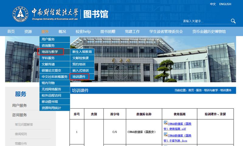 同学们可参见图书馆主页“服务——培训与教学——培训课件”,获取数据库的使用指南和培训课件,同时也可参考《数据库案例三十三期》(链接:https://library.zuel.edu.cn/2023/1013/c14061a345896/page.htm)进行数据库检索方法的深入学习。