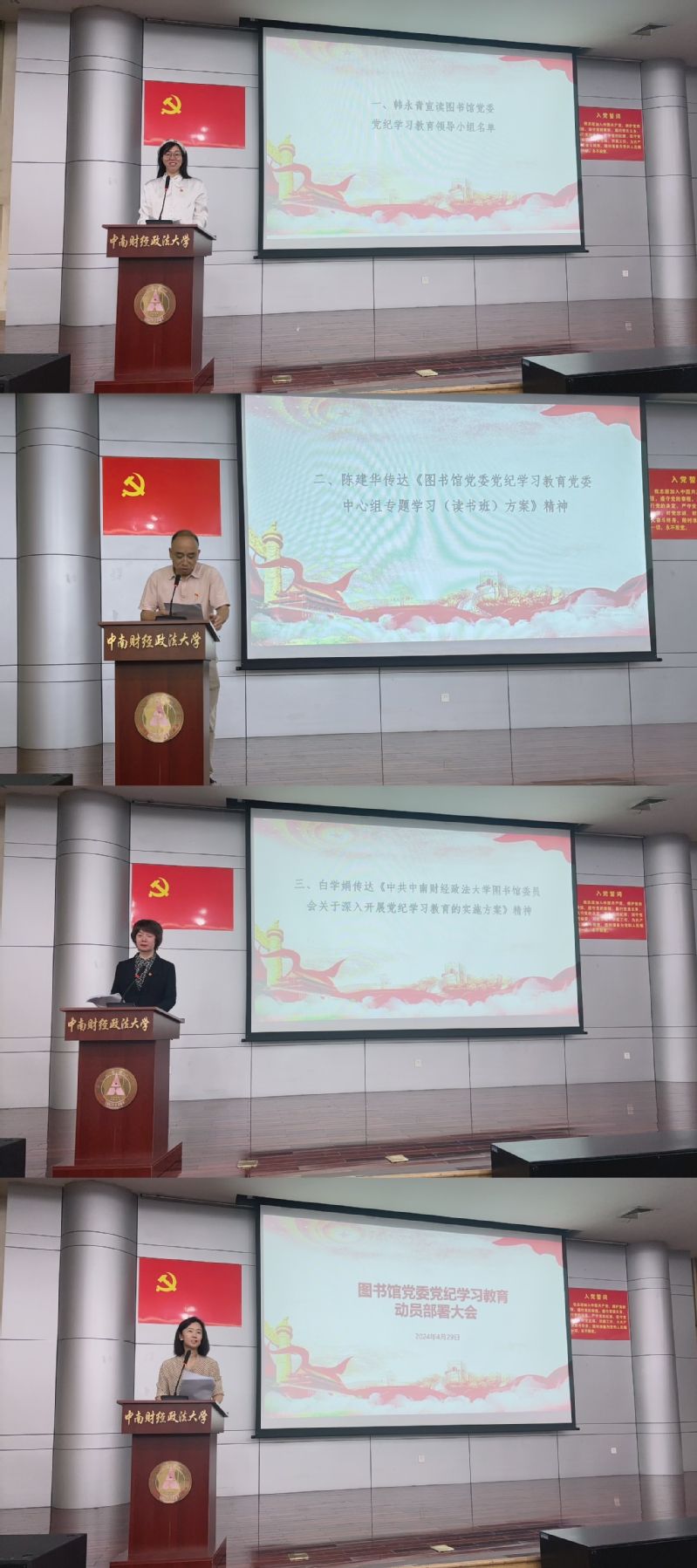 (通讯员 刘佳宇)4月29日上午,图书馆党委在逸夫楼一楼报告厅组织召开全体党员大会,动员部署党纪学习教育工作。会议由图书馆党委书记刘筱彤主持。