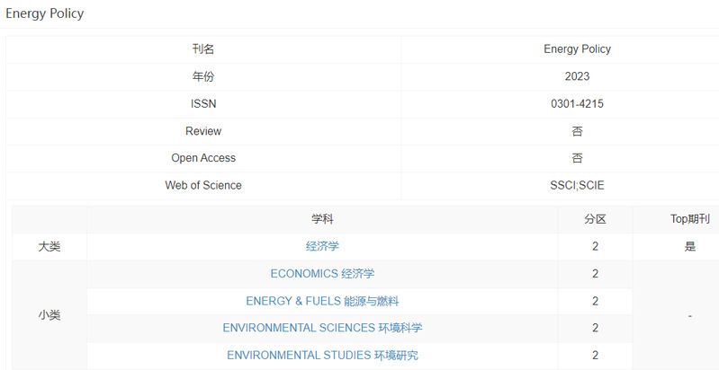所在数据库下载链接:https://www.sciencedirect.com/journal/energy-policy