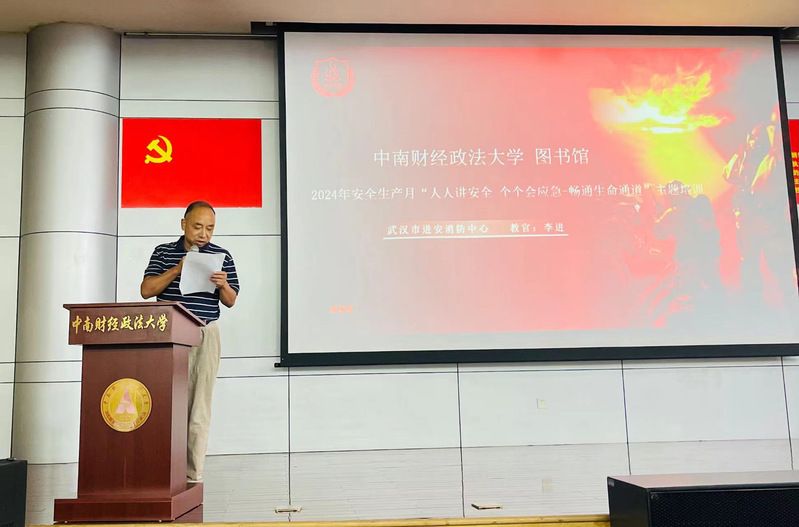 (通讯员 刘爽)为筑牢消防安全防线,普及消防安全知识,提升师生疏散逃生能力和火灾应急处置能力,6月28日,图书馆举办消防安全主题讲座活动。图书馆馆长白学娟、党委书记刘筱彤、副馆长陈建华、副馆长韩永青,及全馆工作人员参加讲座。本次活动由陈建华副馆长主持,武汉市进安消防中心李进教官主讲。