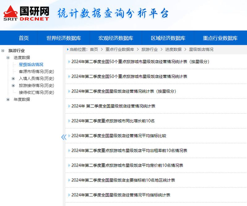 比如想要了解今年旅游市场的整体情况,可以在重点行业数据库中选择旅游行业,即可根据需求选择所需数据进行查证。