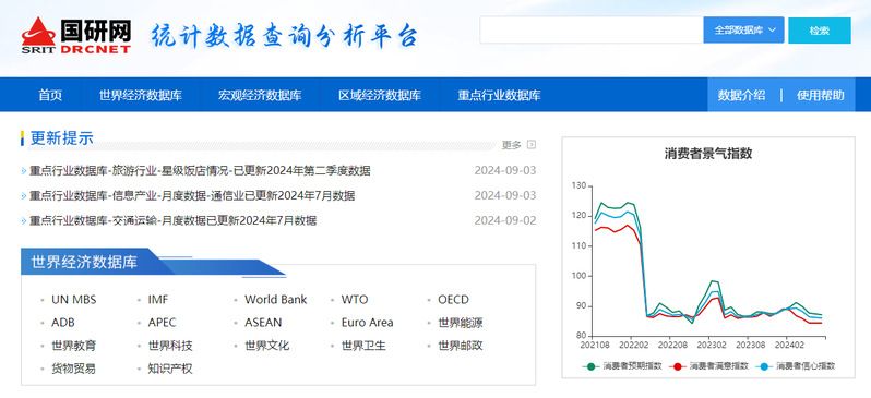 以国研网教育版数据库为例,国研网教育版统计数据库包含了世界经济数据库、宏观经济数据库、区域经济数据库、重点行业数据库等内容,可以在其中查找各类经济和社会发展的权威统计数据。