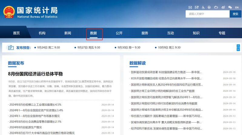 首先,我们可以选择国家统计局的数据中心,该中心可以获得各类型统计数据和统计公报等。