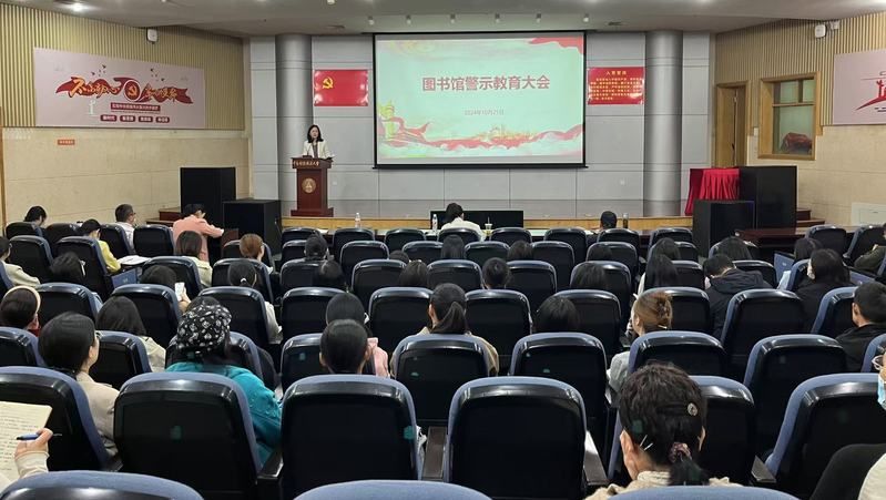 (通讯员 刘佳宇)为进一步深化警示教育工作,10月25日上午,图书馆党委在逸夫楼一楼报告厅组织召开全馆警示教育大会。图书馆全体在编在岗和劳务派遣人员参会,实现了警示教育“全覆盖”。