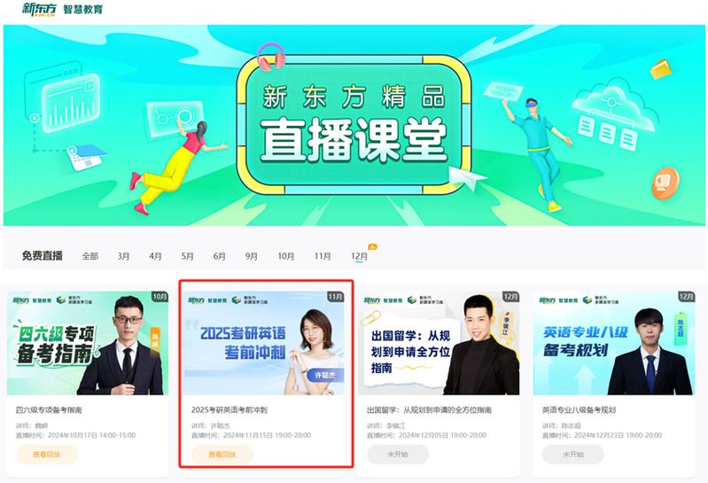 感兴趣的同学还可以选择进入“直播课堂”,了解讲师们对考研重难点知识和应试技巧的讲解,帮助提升学习效率。