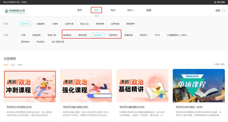 新东方多媒体学习库是一站式的综合学习平台,平台设置了课程中心、考试中心、资讯中心、直播中心四大板块,便于同学们根据自身需求选择不同模块的学习资料,全面提升自己的综合素质。