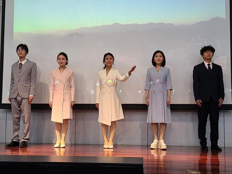 随着主持人充满激情的开场白响起,活动拉开了帷幕。14组选手顺序上场进行展示。滕泽畅,聂士琛,崔在语,唐果,王焱鑫同学用作品《土地的誓言》抒发了对国土沦丧的压抑之情,以及对故乡的深深眷恋;王婵、陈一睿、李芳痕、袁敏尔同学的作品《在中国大地上报道》共同回顾中国在过去几十年中的辉煌成就,饱含对祖国欣欣向荣、不断向前发展的美好祝愿;林子豪、郝京懋、袁启瑞、李潇寒、刘伊函同学用作品《永不消逝的声音》生动形象地表现了抗日战争时期中国播音员的艰苦奋斗和英勇表现;牛茉妍以饱满的情感朗诵了《为有牺牲多壮志》,讲述了一段动人的革命故事,声音铿锵有力,充分展现了先辈们的壮志豪情;海云飞带来作品《百合花开》,她用细腻又坚定的声音向我们展现了一株百合花的生命历程,从而引导我们思考生命的真谛与价值。选手们以作品为声,为大家呈现了一台精妙绝伦的视听盛宴。