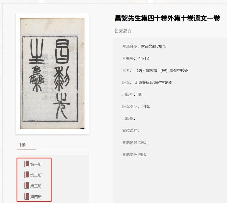 在检索结果页面,找到所需文献,点击“查看详情”进入文献详情页,点击左侧“目录”下的分册即可进入在线阅览,查看文献原版内容。