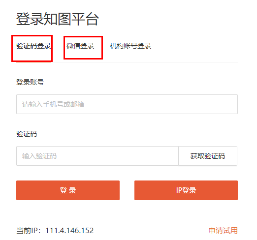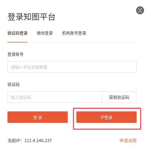 Step1:校园网环境下,浏览器地址栏输入网址https://zhitu.sozdata.com/,进入网站后,点击界面右上角“登录”,选择“IP登录”。