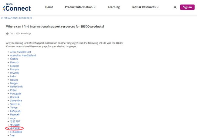 EBSCO数据库(ASC&BSC)提供多语种的免费培训视频供读者学习,点击数据库首页左侧“帮助”选项,跳转后点击页面上方“Home”选项,选择“International Support Resources”,根据需要选择语种,即可获取免费的培训视频。