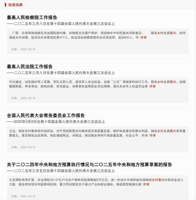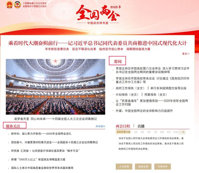 除我馆已购的数据库外,中国政府网也开设了2025年全国两会专题网站(下文简称“全国两会专题网”),供社会公众查阅全国两会信息资讯。