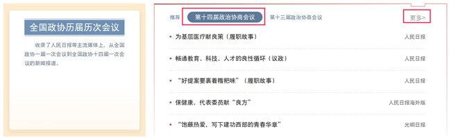 在全国政协文献库中同样可以浏览全国政协历届历次会议的新闻报道,点击“更多”可进入高级检索界面,开展更详细的检索。
