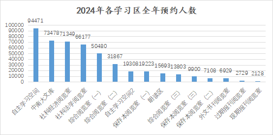 图8 2024年各学习区全年预约人数