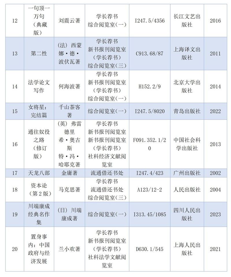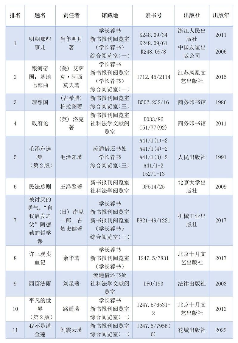 政治、法律类,文学类和经济类图书常年高居我校最受读者欢迎图书类别排行榜前三甲。