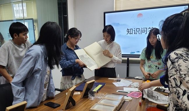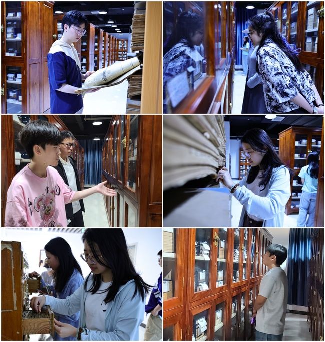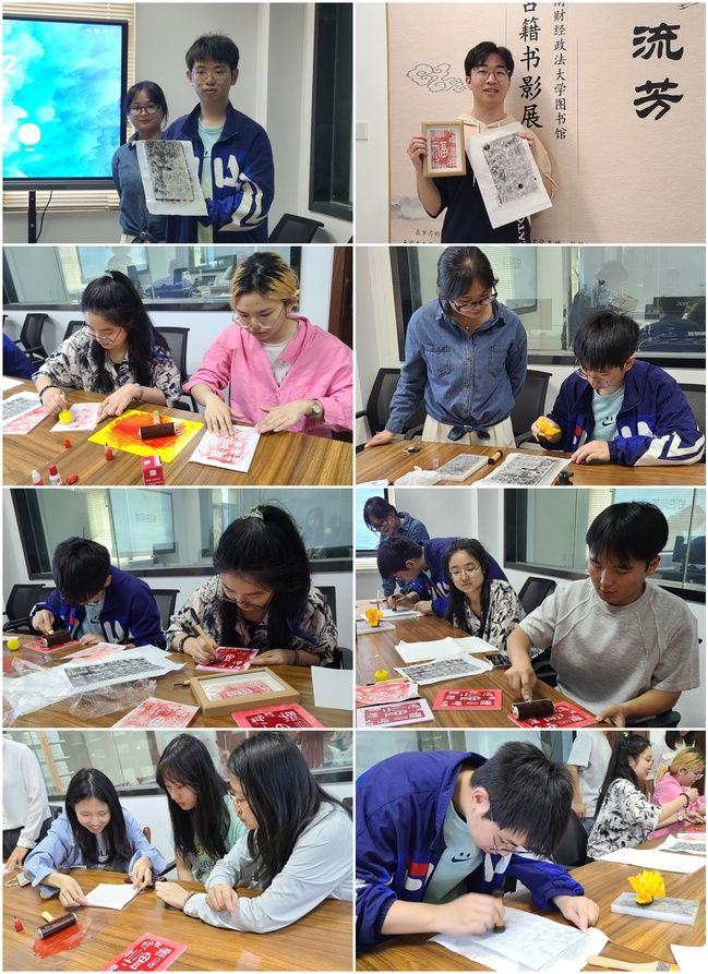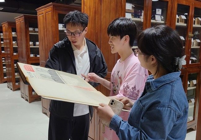 经济学院的夏同学表示:“走进古籍馆,就像踏入了时光隧道,这里珍藏着无数古籍,能在开放日进入线装书库,机会超难得。最让人兴奋的是能亲身体验拓印文化!拿起工具,在老师的指导下,小心翼翼地将文字和图案拓印下来,那种与传统技艺‘对话’的奇妙感觉,言语都难以形容”。统数学院的曹同学和陈同学,惊叹于古籍馆馆藏文献的丰富和传统拓印技艺的精妙,精心记录下了参观、体验过程。华中师范大学文学院的马同学专程到我校参加古籍馆开放日活动,他对古籍文献具有浓厚的研究兴趣,他认为“每一本古籍都承载着岁月的故事,每一次翻阅都是对文化珍宝的探寻,拓印实践让我们触摸到了千年前的文字”。