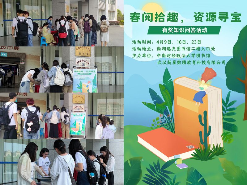 (通讯员 江语蒙)为进一步推进书香校园建设,引导和鼓励广大师生充分利用图书馆电子资源,提升师生信息素养水平,米兰电竞·(中国区)图书馆于2025年4月9日、16日和23日分别在南湖校区逸夫图书馆二楼大门外侧开展了“春阅拾趣,资源寻宝”图书馆电子资源知识问答活动。本次活动共吸引400余名师生参与答题。