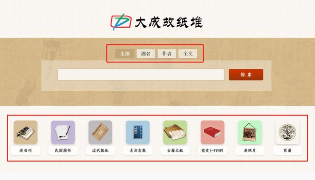 大成故纸堆是专门收录古旧资源的数据库,内容覆盖老旧刊、民国图书、近代报纸、古方志集、古籍文献、中共党史期刊(-1949)、老照片和家谱等方面的古旧资源。