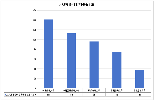 对《中国人民大学复印报刊资料》进行转载量统计,我校转载量113篇,位居第二。
