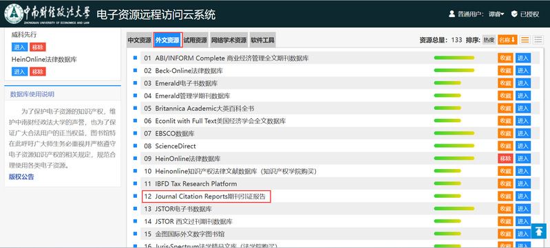 非校园网环境下可以进入图书馆主页——数据库远程访问,通过统一身份认证访问Journal Citation Reports。