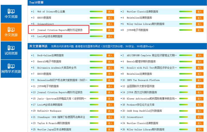 想查阅2025年度《期刊引证报告》的具体收录情况,校园网环境下可以进入图书馆主页——外文库/外文数据库——Journal Citation Reports进行浏览或者检索。