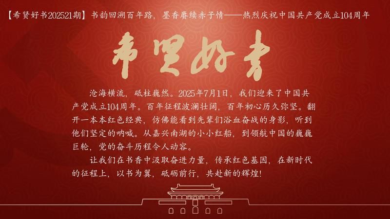 【希贤好书202521期】书韵回溯百年路,墨香赓续赤子情——热烈庆祝中国共产党成立104周年